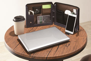 スタンドドキュメントバッグは、スタンド機能により書類が取り出しやすく、省スペースで使用できる点が特徴。書類の整理に役立つインデックス付きのポケットや、小さいサイズの書類用のポケットを備える。