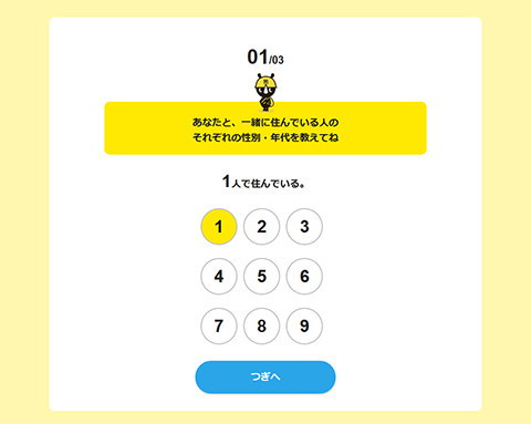 東京備蓄ナビでは、一緒に住んでいる人の人数、性別と年代、住居の種類(戸建て/集合住宅)、ペットの有無を回答すると、必要な品目と必要量の目安がリストにて表示される。