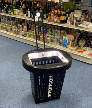 実証実験は阪急オアシス中之島店(大阪市北区)で実施。来店客が、所有するスマホに専用アプリをダウンロードし、画像認識装置がついたカートとペアリングして利用する。