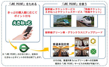 JRE POINTも貯められるようになり、新幹線eチケット(指定席)で最大2%、チケットレスサービスで最大5%のJRE POINTを付与。さらにビューカードで最大3%、ゴールドカードで最大8%を貯められ、貯まったJRE POINTは「特典チケット」や「アップグレード」に利用できる。なお、「えきねっとポイントサービス」は8月31日に終了。事前に「えきねっとポイント」からJRE POINTへのポイント交換の自動申込設定を行なえば、リニューアル後もJRE POINTが自動的に貯まる。