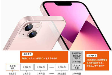 チップはA15 Bionicで、動画の「シネマティックモード」などカメラ機能を強化。背面カメラは超広角カメラ、広角カメラの2眼仕様で、ふたつのレンズを対角線上に配置している。いずれも1,200万画素。