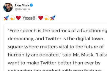 マスク氏は買収の理由について、言論の自由の確保とともに「人類の助けになりたい」と言及。「Twitterはブランドを強化し、企業の成長を助ける最も尊敬される広告プラットフォームになる」と述べている。