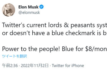 イーロン・マスク氏がTwitterの買収を完了した。マスク氏は、28日に「the bird is freed(鳥は放たれた)」とツイートし、自身のTwitterアカウントの肩書も「Chief Twit」としている。Twitterはニューヨーク証券取引所に上場廃止を要請し、28日には株式取引が停止。11月8日に上場廃止される。