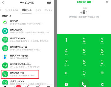 LINE OutはLINEから安価に通話できる音声通話サービス。国内外へ携帯・固定電話を問わず通話可能で、LINEを利用していない人とも通話できる。通話に利用するプリペイド方式の「コールクレジット」と30日間決められた時間の通話ができる「30日プラン」が用意されてきた。