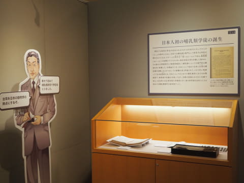 そのほか展示では、哺乳動物談話会の設立に関わった直良信夫や花岡俊政、後に科博の動物部長を務める今泉吉典が、関連資料や標本とともに紹介されている。
