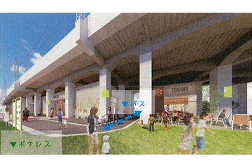 北綾瀬駅北改札からペデストリアンデッキで直接接続される予定で、駅前交通広場にも面する立地。地域居住者のデイリーニーズに合わせた約50店舗を展開することで、生活利便性向上を図る。