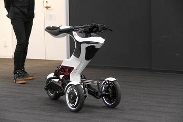 特定小型原動機付自転車「ストリーモS01JT」は、令和4年国土交通省告示第1294号で告知がされた「特定小型原動機付自転車」の性能等確認制度において、2023年6月6日付で「適合」の通知を受けたもの。歩く~自転車のスピードまで自分のペースで移動できるのが特徴で、人がもつ自然な反応を活かした独自の「バランスアシストシステム」(特許取得済み)を搭載。停止時も自立し、1~2km/hといった極低速から快適な速度まで転びづらく、安定した走行を可能にする。20kgの荷物を乗せた場合でもバランスを保持して走行でき、凹凸があっても親露や姿勢を乱されにくく、低速でもふらつきにくい。