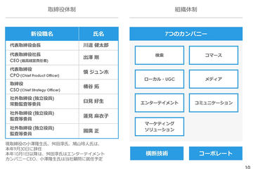 10月からは、7つのカンパニーは、検索、コマース、ローカル・UGC、メディア、エンターテイメント、コミュニケーション、マーケティングソリューションという7つの組織体制に移行。旧LINEの事業は主にコミュニケーションカンパニーが担当する。