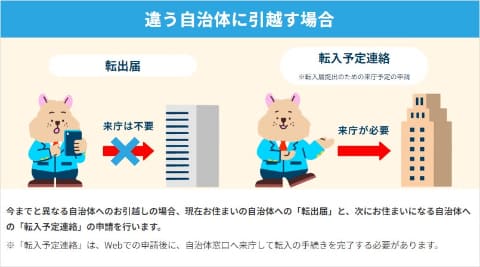 転出手続きはオンラインで完結するため、転出元の自治体への来庁は原則不要となる。また、転入・転居予定の連絡を事前にするため、転入・転居先の自治体へ来庁した際にスムーズに手続きが行なえるという。