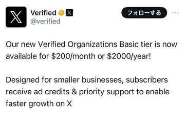 X(旧Twitter)は28日、サブスクリプションサービス「X Premium」に新プラン「プレミアムプラス」と「ベーシック」を追加した。従来のX Premium(Xプレミアム/月額980円)は表示広告が半減されるが、プレミアムプラスは広告無しで月額1,960円、広告は無料プランと同等のベーシックが月額368円。