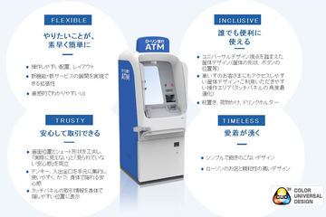 新型ATMは、2024年7月から流通予定の新紙幣に対応。最大の特徴は、NFCを搭載し、QRコード決済やコード決済アプリや非接触カードへの現金でのチャージに対応すること。また、マイナンバーカード等を使った行政サービス連携も今後対応予定となっている。