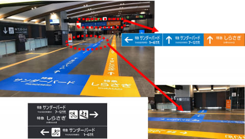 また、新幹線から在来線特急への乗換は、新幹線つるぎ号1列車から、サンダーバード号、しらさぎ号の2列車それぞれに乗車する人が同時に移動する場合がある。1つのエスカレーターの集中・混雑を避けるため、サンダーバード号としらさぎ号の乗り場までをわかりやすく示すことで、スムーズに乗り換えられるとしている。