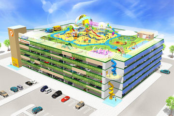 「物流課題対応型 自走式立体駐車場」は、限られた敷地のなかで、駐車スペースの拡充と効率的な利用を実現する駐車場。物流運送業・倉庫業・製造業・サービスエリア等で大型車・普通乗用車の駐車スペース不足を解消し、休憩施設(休憩所・シャワー室・トイレ)により労働環境の改善にも寄与できる。太陽光発電システムを備え、津波や豪雨災害時の避難場所としても利用可能。
