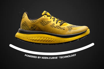 アスファルト、砂利道、岩場などの様々な地形でグリップ力を発揮するという全方向型アウトソールを採用。シャンクは搭載せず、アウトソールのラバーを中足部で巻き上げ、過度なねじれを抑制して安定感とスムーズな推進力を生み出す「KEEN.TERRAIN SHIELD(キーン・テレインシールド)」を搭載した。