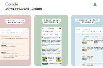 「AIモード」は、さらなる探求、比較、推論を必要とする質問に特に役立つとする。従来なら複数回の検索を行なうような、あいまいな内容を含む質問にもAIが回答する。今後は、画像や動画を使用した視覚的な応答を含む、新しい機能とアップデートに取り組んでいく。