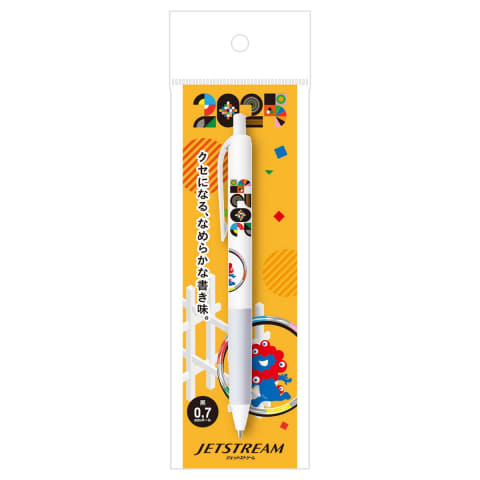 JETSTREAM単色は、0.7mm黒色ボールペン。ばんばんぼーんとランランの2柄を用意する。価格は540円(税別)。