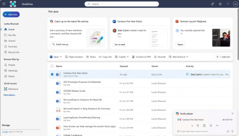 同社は2024年9月にOneDriveにAIアシスタント「Copilot」を実装している。今回のアップデートでは、これまでも可能だったファイルのサマリーなどに加えて、質疑やFAQ生成など、情報整理を支援する機能が拡充された。特に「Audio overviews(オーディオ概要)」では、WordやPDF、会議議事録などの内容を数秒で音声コンテンツに変換し、移動中など手が塞がった状態でも情報を確認できる。