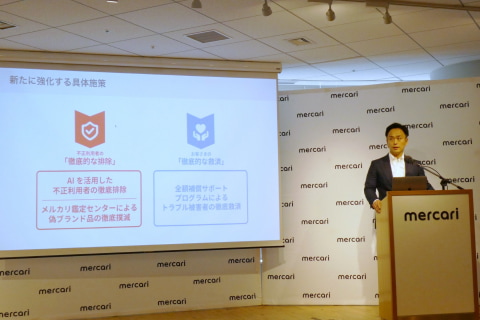 メルカリは21日、不正利用者の排除と正しく利用するユーザーの救済を柱とする新たな安心安全方針を発表し、これに基づく3つの取り組みを公開した。AIによる不正監視の強化や偽ブランド対策を担う「メルカリ鑑定センター」の設立、トラブル時の「全額補償サポートプログラム」導入などを順次開始する。