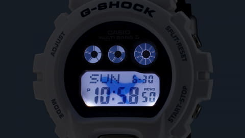 G-SHOCKの「GW-6905K」は、大きな胸びれが特徴のザトウクジラをデザインモチーフに採用。ツートンカラーの体色をコントラストの強い配色で表現した。バンドはディープブルーで、ザトウクジラが回遊する遠洋のイメージを重ねている。