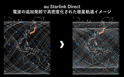KDDIは、衛星とスマートフォンの直接通信サービス「au Starlink Direct」において、7月17日までにつながりやすさが向上したと発表した。SMS送受信にかかる時間は従来の2分以内から30秒以内へと大幅に短縮された。