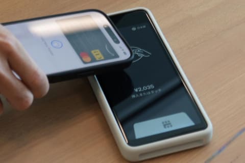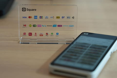 Square ターミナルはカウンター据え置きを想定しているが、Squareハンディは、軽さを活かして店員が手持ちでテーブル会計などに対応できる点が特徴。決済手段はクレジットカード/デビットカード(Visa、Mastercard、American Express、JCB、Discover)と、iD、QUICPay、Suicaなどの交通系電子マネー、Apple Pay。クレジットカードは、タッチ決済とICチップ読み取りに対応する(磁気スワイプには対応しない)。