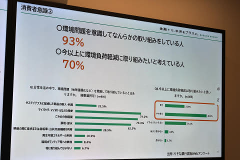 りそなホールディングス 執行役 兼グループCDIOの川邉 秀文氏は、日本においても、ゴミ分別やマイバックといった活動などで、環境負荷軽減の意識は高まっており、90%の人は「気候変動に対して何かアクションを起こしたい」と感じているという。しかし、CO2排出削減への具体的なアクションのためには、情報が不足し、何をしていいかわからないという課題があり、「価値と行動のギャップがある」という。