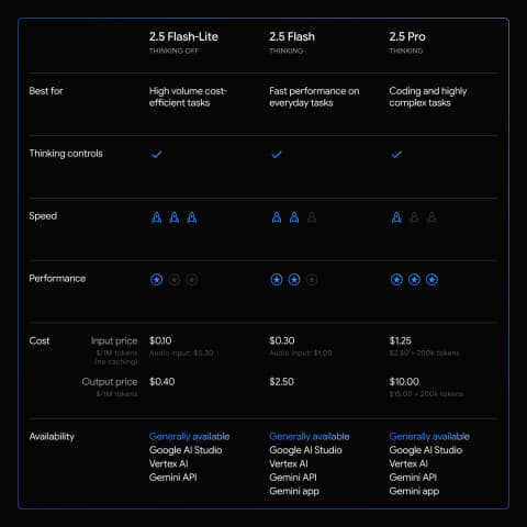 これまでで最もコスト効率が高く、最速の2.5モデルとしており、推論機能はデフォルトでオフの状態でレスポンスの高い運用が可能。必要に応じて推論をオンにできる。