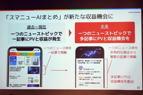 スマートニュースの日本事業プロダクト担当VP・村上臣氏は、「ただサマリーにするだけでなく、多面的な視点で伝えることを重視した。ニュースの背景や今後の見込みなどを伝えることで、ニュースの全体像理解を助けたい」とスマニューAIまとめの意義を説明する。