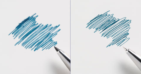 異なる書き心地を試せるよう、ファインライターとローラーボールの2種類のリフィルが付属。特徴は、ファインライターが樹脂製のペン先によるトメ・ハネ・はらいや線幅の表現の豊かさ、ローラーボールが粘度の低いインクによるサラサラ感。