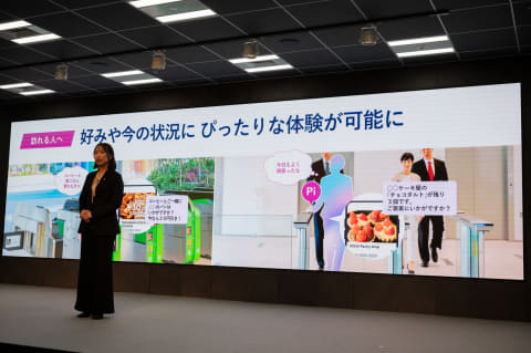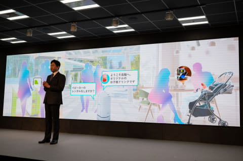 来街者に対しては、高輪ゲートウェイ駅で降りて駅の改札を通過し、隣接する「TAKANAWA GATEWAY CITY」に足を踏み入れると、気候やリアルタイムの環境、1万人規模の人流シミュレーションも考慮した、パーソナライズされた特別な案内を受け取れるといったように、街を訪れる人と街がつながる仕組みを用意する。公共スペースを移動するロボットも活用され、例えば親子連れに飲料を配布するといったパーソナライズされたサービスを提供する。