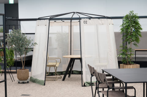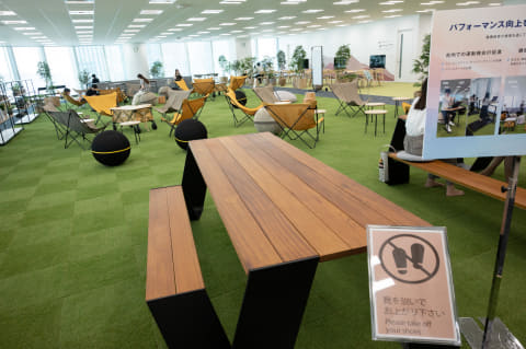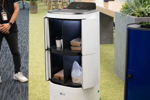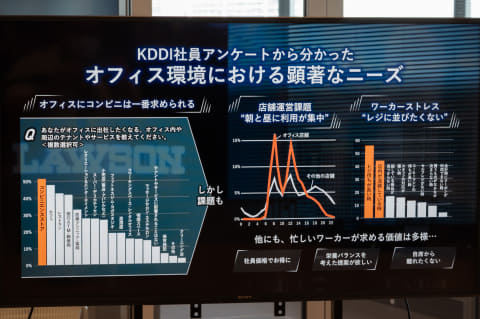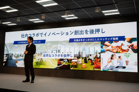 働く人に対しては、KDDIは社内にオフィス特化型のコンビニを設置、ロボットによる回遊販売や注文に応じた配送を実現し、省人化や効率化を図る。ロボットは、エレベーターに乗ったり自動ドアやゲートを通過したりでき、人と同じように移動する。KDDIはほかにも、パートナーとの共創拠点の運営や、新しい働き方へに挑戦する各種のフロア・設備を用意し、新たな働き方を推進していく。