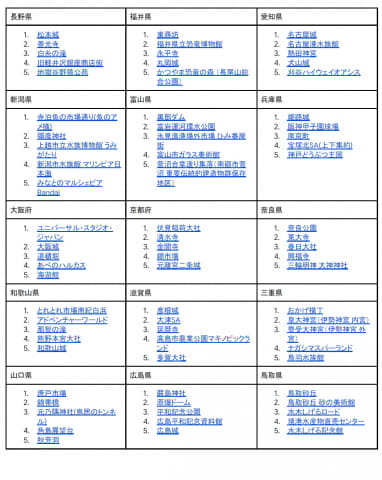 このほか、動物園や水族館が人気を集めている。海に面している都道府県では市場が人気。景勝地や、湖など涼しく過ごせるスポットにも注目が集まっているという。