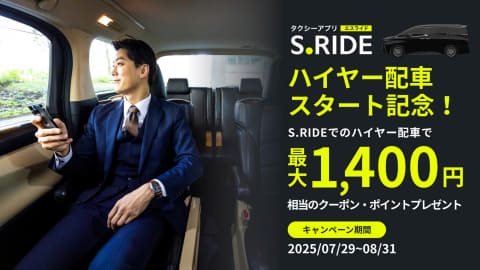 国際自動車、寿交通、大和自動車交通、東京エムケイとの連携により実現したもの。S.RIDEアプリから「レクサス LM」や「アルファード」「ヴェルファイア」「メルセデス・ベンツ Vクラス」などのハイヤー車両を配車できる。個人や法人契約プラン「S.RIDE Biz」から手配可能。今後、サービス提供エリアは順次拡大する。