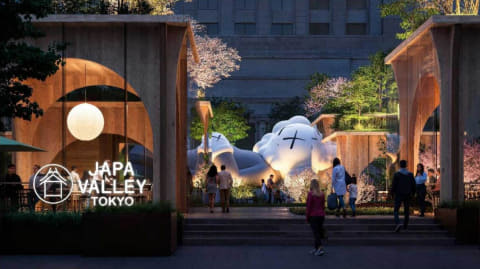 JAPA VALLEY TOKYOには、アート・食・ファッションのポップアップストアや、多様な発信を行なうイベントスペースなどを開設。また、KAWSとのコラボレーション作品を、有楽町エリアの新たなシンボルとして展示する。