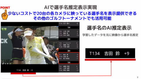 ゴルフ競技は、AIで人物を特定しようとしても、帽子やサングラスの着用や下を見る顔の向きなど、顔認識が難しいシーンが多いほか、ゼッケンがなく服装が日によって変わるなど、外観についても事前のデータで学習することが難しいという課題があった。