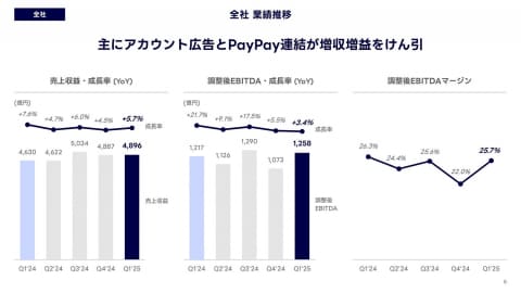 2025年度第1四半期決算は、通期ガイダンスに沿って推移。売上収益は4,896億円(前年同期比5.7%増)、調整後EBITDAは1,258億円(同3.4%増)。