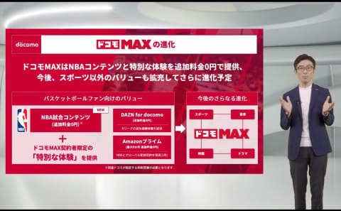 なお、NBAコンテンツは「ドコモ MAX」「ドコモ ポイ活 MAX」以外の契約者やドコモ回線を利用していない人も、サービス申込みにより視聴可能となる予定で、詳細は9月に発表される。