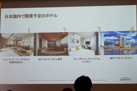マリオットは日本展開を着実に進めており、ラグジュアリーホテルは直近でも4つを開業予定。ロイヤルティプログラムのMarriott Bonvoyはホテルの枠を超えた存在と位置づけ、美食やプロによるゴルフレッスンといった限定体験にもフォーカスしている。楽天や日本の航空会社との提携も進んでおり、日本ローカルの取り組みを進めているのもポイントになっている。
