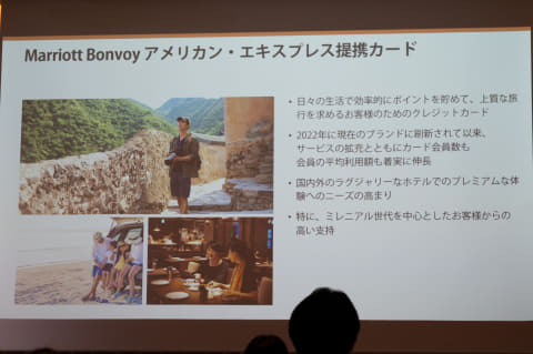 マリオットとアメリカン・エキスプレスの提携カードは2013年に登場、2022年に刷新されていた。幅広い世代で利用され、特にミレニアル世代の増加が目立つという。今回の刷新は、ユーザーの要望に応える形で特典内容を強化し、ラグジュアリーホテルでのプレミアムな体験にフォーカスするという内容。