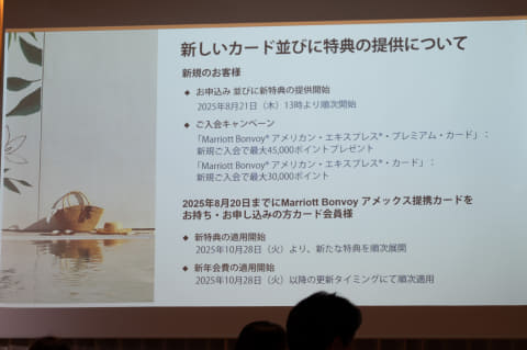 アメリカン・エキスプレス・インターナショナル(アメリカン・エキスプレス)とマリオット・インターナショナルは、両社による提携クレジットカードを刷新する。申し込みの受付は8月21日から。既存の会員も特典内容や年会費が順次切り替わる。
