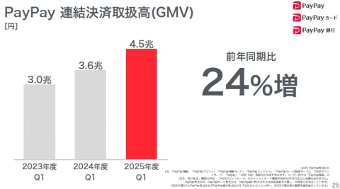 ファイナンス事業はPayPayの連結決済取扱高(GMV)が4.5兆円を突破し、売上高913億円(同23%増)、営業利益181億円(同137%増)と大幅な増益となった。PayPay事業に関しては、上場に向けた準備が順調に進行していると述べ「適切なタイミングで情報を開示」するとした。