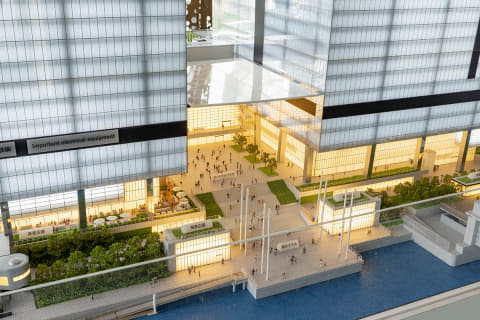 ブルーフロント芝浦は、9月1日に全体開業を迎えるTOWER Sと、2030年度竣工予定のTOWER Nのツインタワー構成の複合施設。規模はTOWER Sが地上43階・地下3階、TOWER Nが地上45階・地下3階。