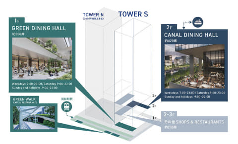 野村不動産とJR東日本が共同で推進するツインタワー「BLUE FRONT SHIBAURA(ブルーフロント芝浦)」の1棟目となる「TOWER S」の、低層商業エリアに出店する27店舗が決定した。9月1日11時にオープンする。