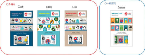 ラインアップはピンバッジセット、クリアファイル、ステッカー、アクリルキーホルダー、アクリルスタンド、マスキングテープ、マスキングシール、耐水・耐光ステッカー、スクエアメモパッド。会場内と一般販売でデザインが異なるものや、会場内のみ、もしくは一般販売のみのものもある。