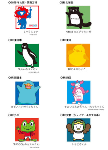 ミャクミャクと共演しているJRグループ7社のキャラクターは以下の通り。