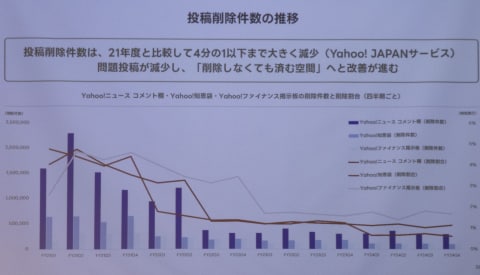 情プラ法は今年4月に施行され、大規模プラットフォーム事業者に対して、誹謗中傷や権利侵害に関する投稿削除の迅速対応と運用状況の透明化を義務付けている。LINEヤフーは「Yahoo!知恵袋」「Yahoo!ファイナンス掲示板」「LINEオープンチャット」「LINE VOOM」の4サービスが対象となり、削除基準の全面見直しや窓口体制の整備を進めてきた。
