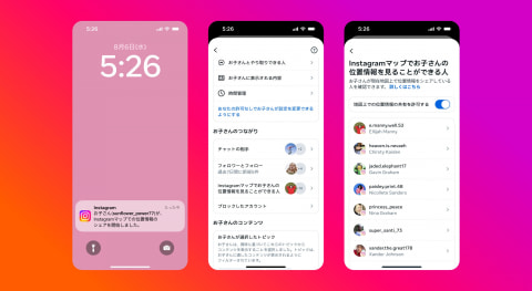 さらに、位置情報をベースにした「Instagramマップ」機能も正式に開始。利用者が設定した友達と自分の位置情報を共有できる機能で、初期設定では位置情報の共有はオフとなっている。ユーザーは共有相手を「友達」「親しい友達」「選択した友達」などから選べ、いつでもオン・オフの切り替えが可能。保護者向けにはペアレンタルコントロール機能も備え、子どもの位置情報共有の管理も行なえる。
