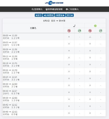 エクスプレス予約、スマートEXでは、空席情報を確認しながら予約可能です。空席状況だけを知りたい場合は「JRサイバーステーション」で確認できます。