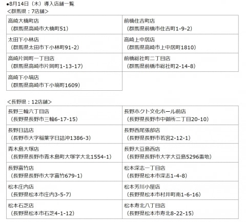 ローソンは2021年11月に東京都内で実験販売を開始し、25年7月末時点で全国860店舗へ拡大。対象店舗は群馬県では高崎市や前橋市など7店舗、長野県では長野市、松本市を中心に12店舗が対象となる。