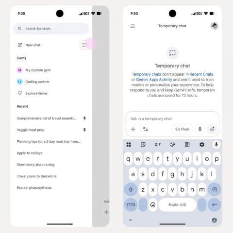 また、Temporary Chat(一時的なチャット)機能も導入し、今後数週間で順次拡大していく。一時的なチャットは、最近のチャットやGemini Apps Activityに表示されず、Geminiの体験パーソナライズやGoogleのAIモデル訓練などには利用されない。ただし、ユーザーへのフィードバックのため、最大72時間は保存される。